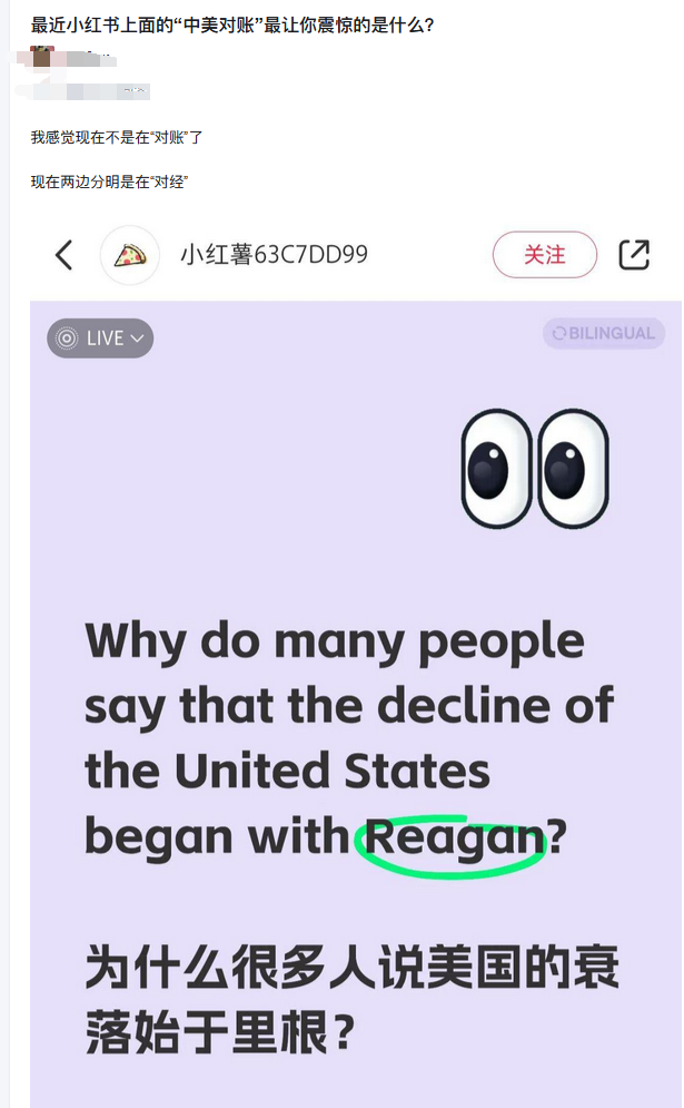 最終我們會看到,**小紅書對賬會是一個試金石,**國內那些長久以來致力於在中國推動西化的人,他們的口號姿態,他們的道德外衣最終都會在中美兩國民眾的大對賬運動中被試煉出本來面目。