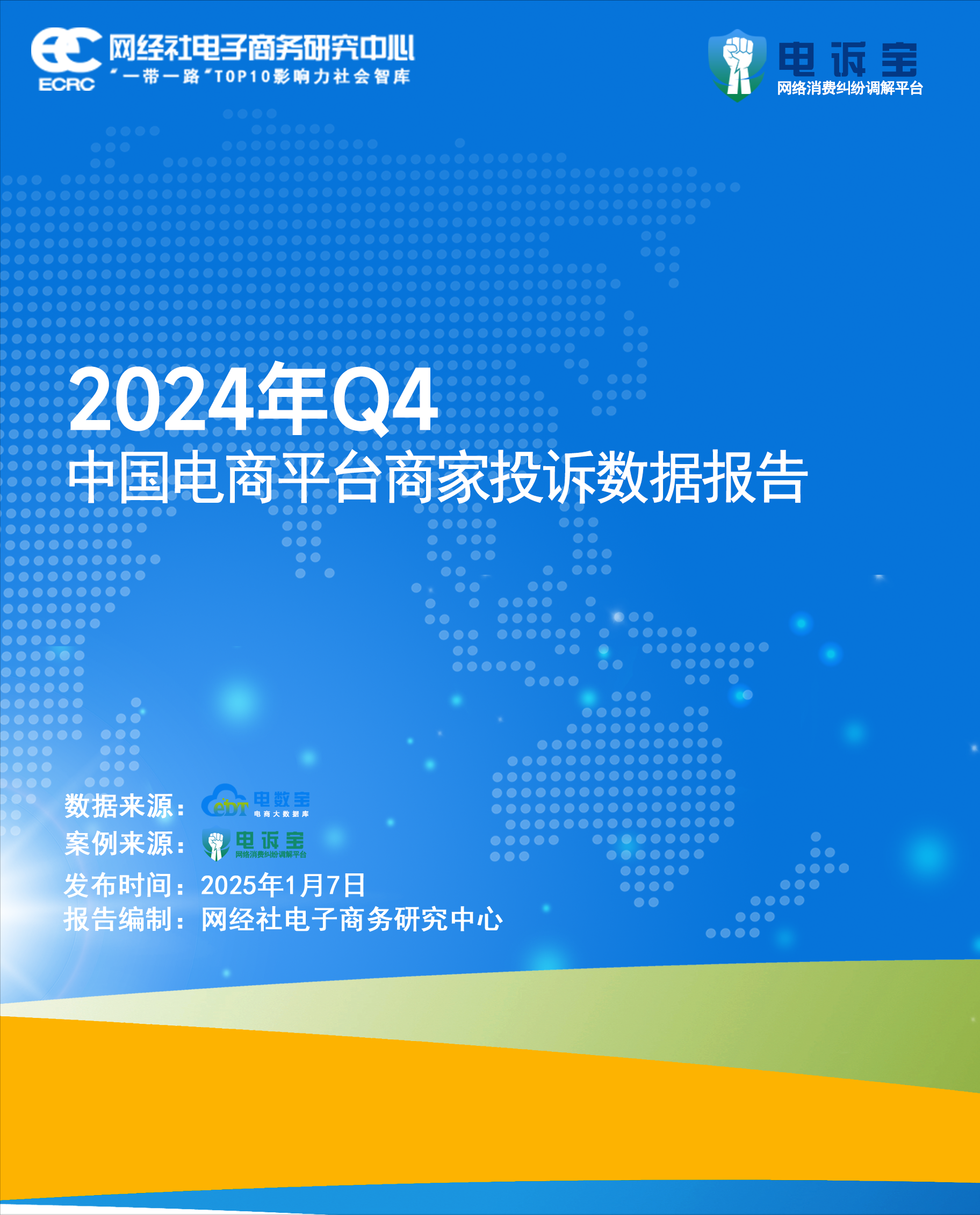 2025年1月7日,依據網絡消費糾紛調解平台“電訴寶”商家投訴通道Q4受理的全國超20家電商平台3500餘份商家投訴案例,以及電商大數據庫“電數寶”分析的數據,網經社電子商務研究中心例行發佈**《2024年Q4中國電商平台商家投訴數據報告》**。