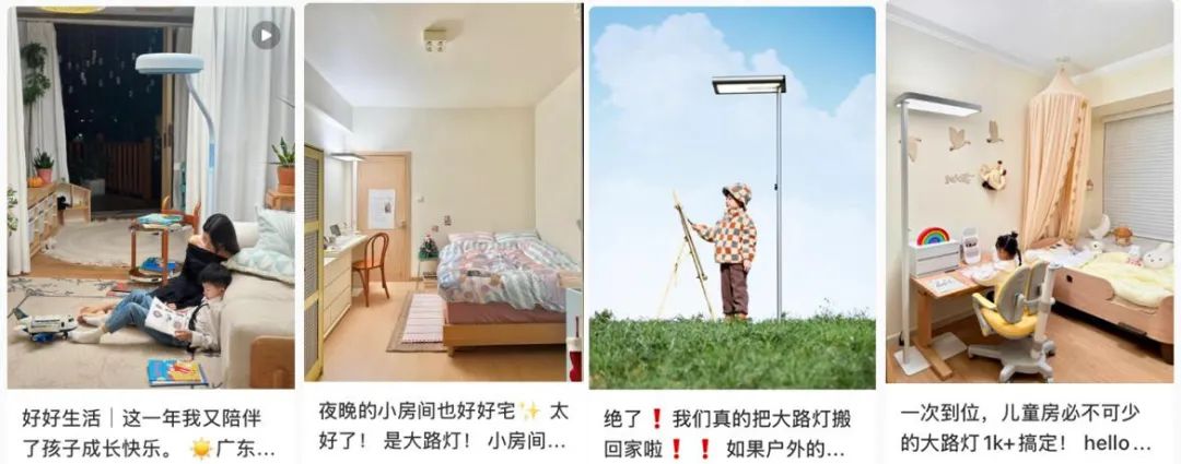 不少家長曬出家中學習角的照片,搭配使用心得和推薦,營造出“大路燈”作為“育兒神器”的消費氛圍,進一步推動了“大路燈”的火爆。