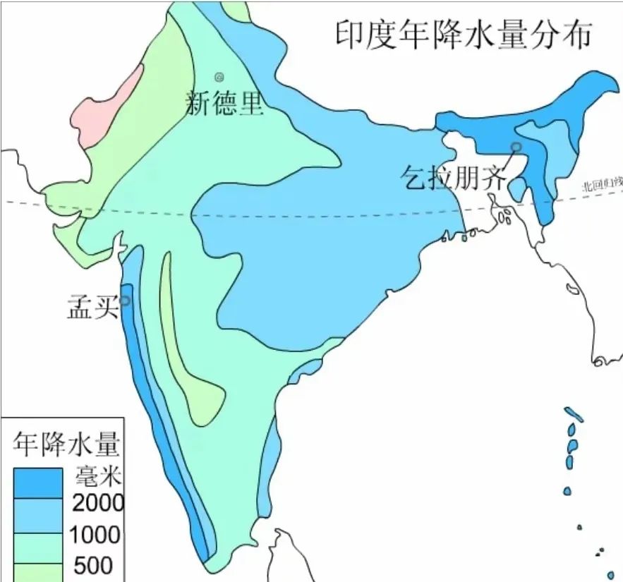 印度處於歐亞大陸南部,熱帶與亞熱帶地區,以熱帶季風氣候為主,月平均氣温在21℃以上。
