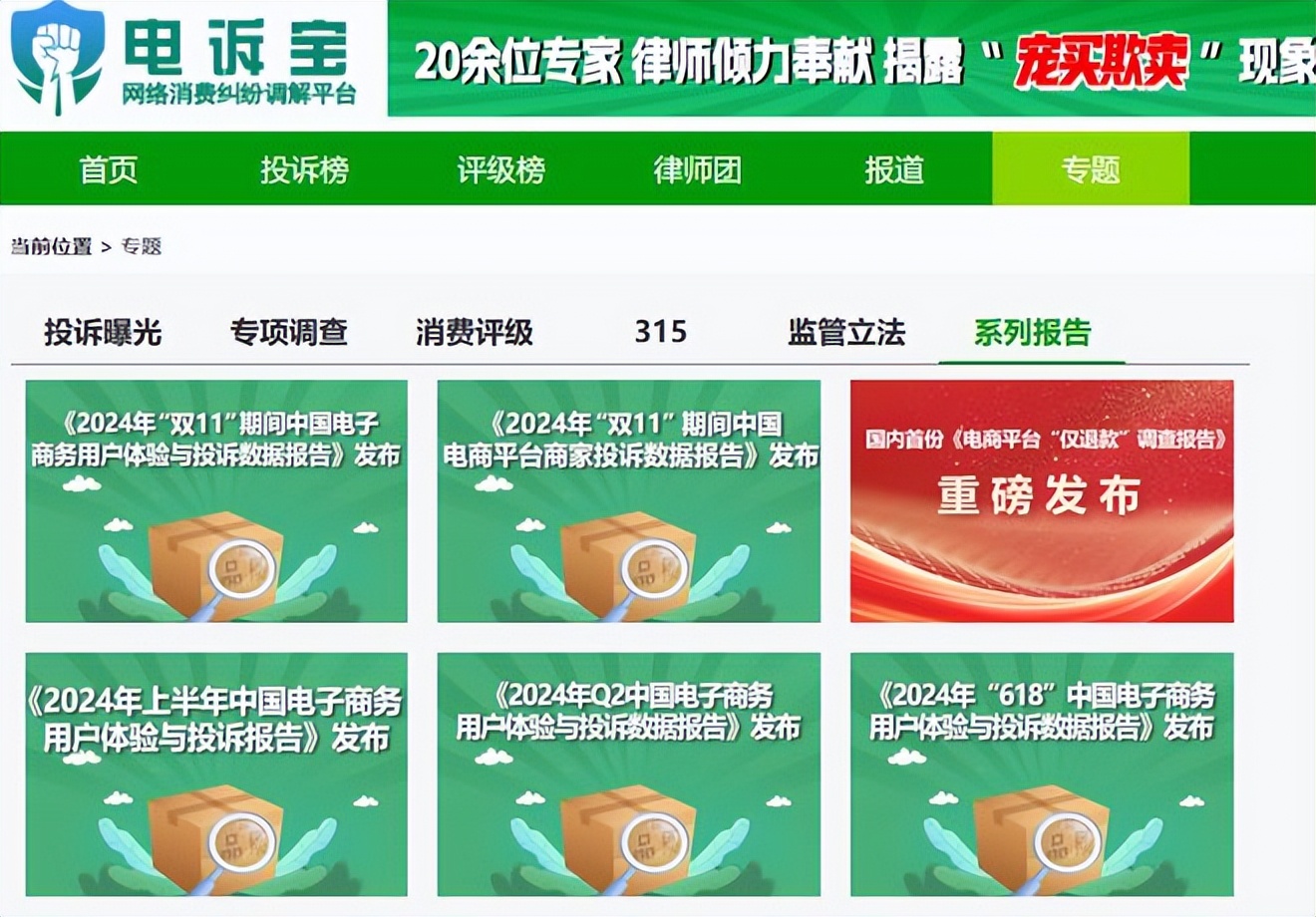發佈了34篇投訴報告,根據平台受理的客訴“大數據”和真實案例,每月度、季度、半年度、年度公開發布客觀用户體驗報告和商家投訴報告,已連續十餘年發佈,被業內視為**“電商315風向標”**,被全國廣大用户、企業、媒體、政府所認可和引用。