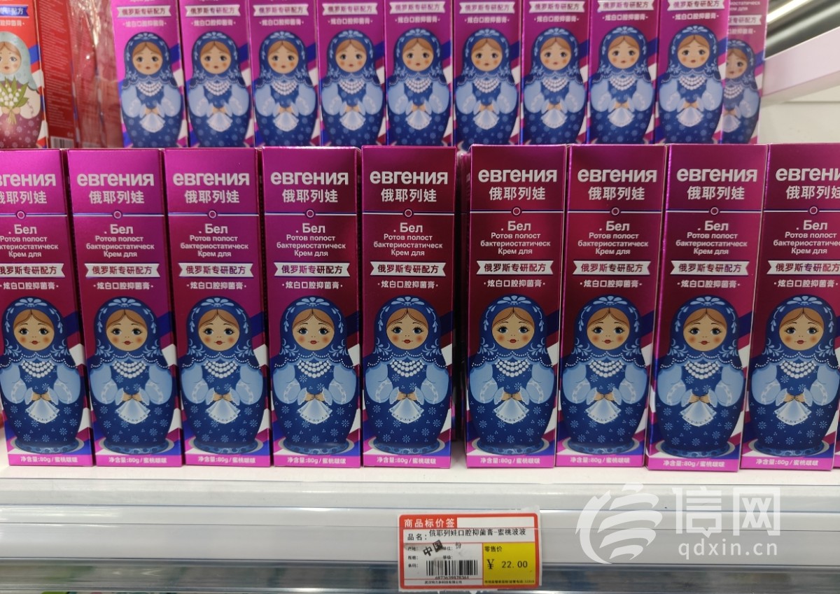 放着喀秋莎、擺着大列巴,最近一段時間,“俄羅斯商品館” 在國內各地迅速興起,一時間吸引眾多目光。信網來到了位於青島市延吉路附近一家商場一樓的“俄羅斯商品館”。還未走進店鋪,醒目的“Russia”標識和極具異域風情的藍底白字招牌就吸引了眾人的目光。店內循環播放着俄語歌曲,貨架上擺滿了巧克力、奶製品、肉製品、蜂蜜、酒水等各式各樣的商品,包裝上印着大量俄文,搭配着富有俄羅斯特色的圖片,種類極為豐富,讓人彷彿置身於俄羅斯當地商場。