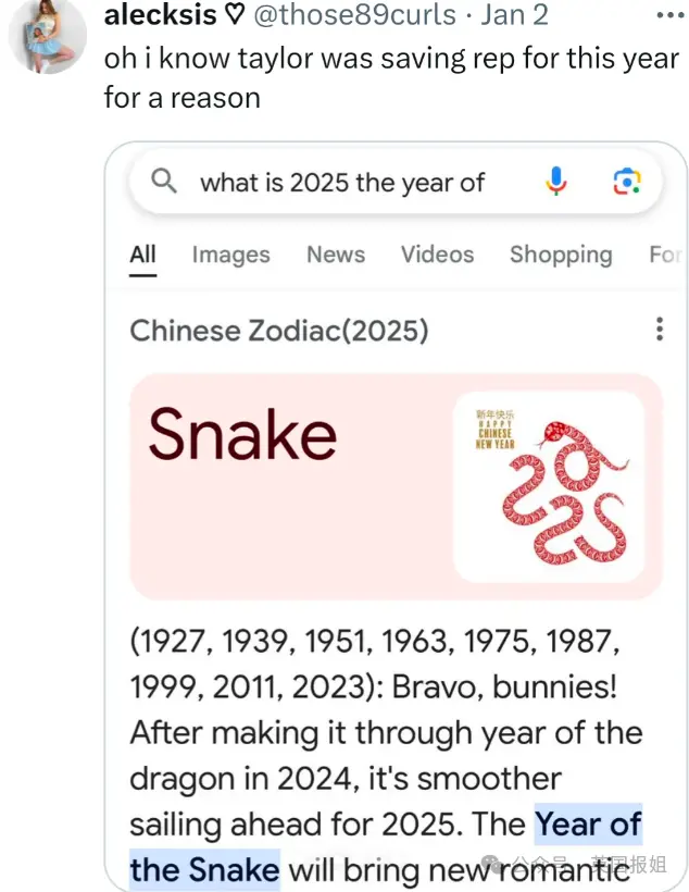 這些自驅力超強的海外網友們,不僅快速掌握了十二生肖的順序,還按圖索驥推算出,今年的本命年大咖是"黴黴"泰勒.斯威夫特?