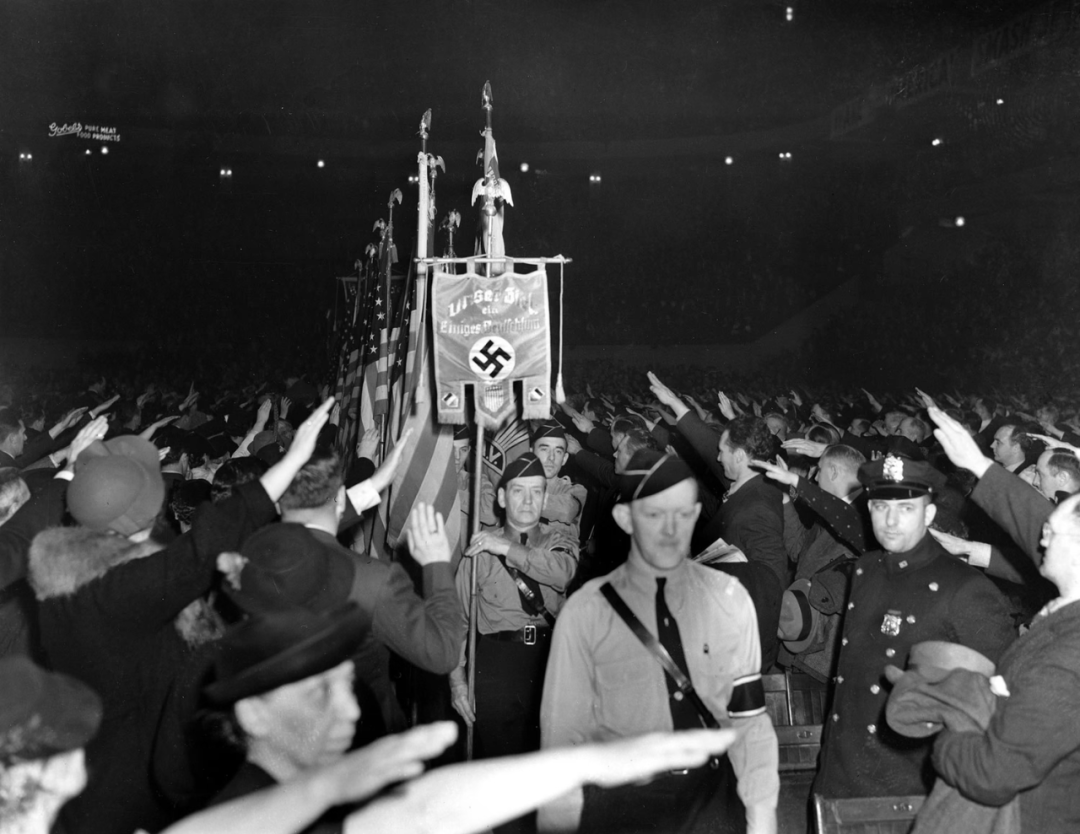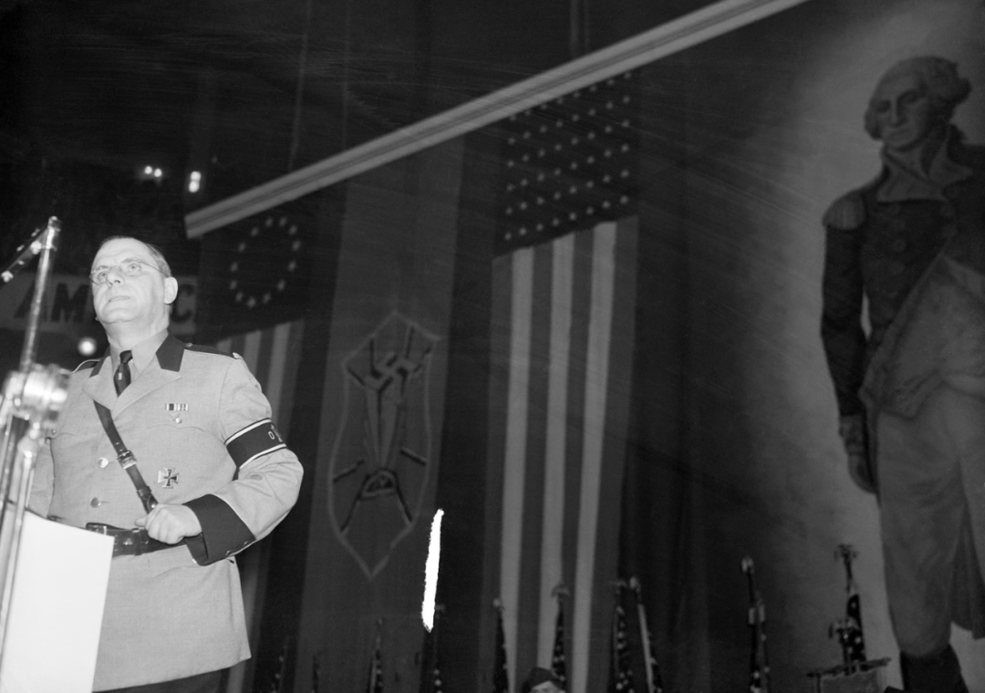 1939年2月20日,有20000多人在紐約麥迪遜廣場花園舉行的“德美同盟”(納粹組織)集會。會場中間是喬治·華盛頓畫像,參會者稱他為“第一位法西斯主義者”,並聲稱華盛頓“知道民主行不通”。