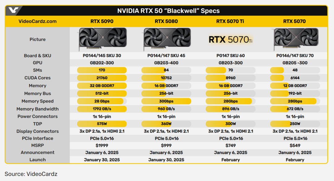 關於 50 系顯卡的參數規格,大家可以參考外媒整理的表格,這裏我就不再展開了,省流就是:全系的紙面參數看起來都有提升。