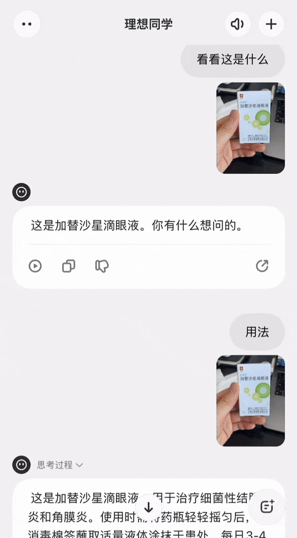 所謂“看世界”,就是支持對視頻圖像交互,你看到什麼不懂的,直接用手機拍下來就能向理想同學提問。