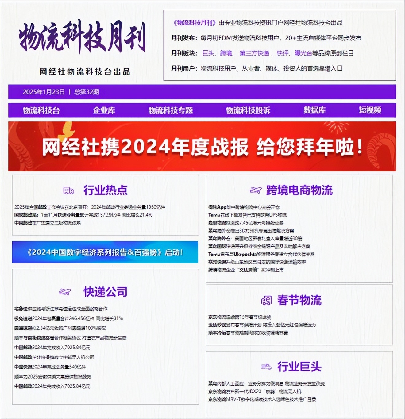 2025年1月,物流科技發生哪些新鮮事?以下為網經社物流科技台為您帶來1月最新動態回顧。
