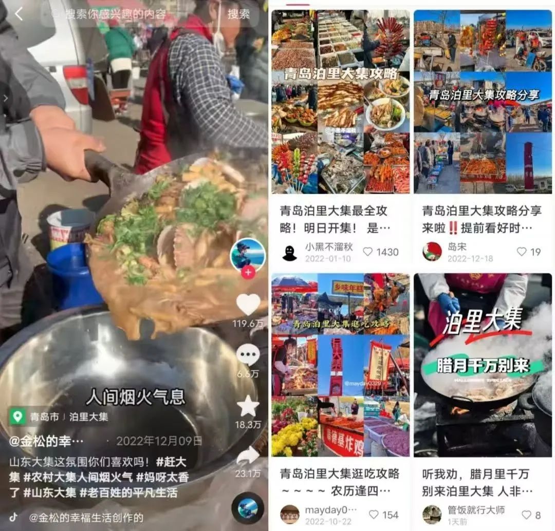 趕大集,過大年,第一批迴到老家的年輕人已經趕起了鄉村大集。北京的郊區大集、遼寧瀋陽的造化大集、山東青島的泊裏大集、陝西西安的焦岱大集,還有河南開封的川大集……一時間都成了網紅打卡地。