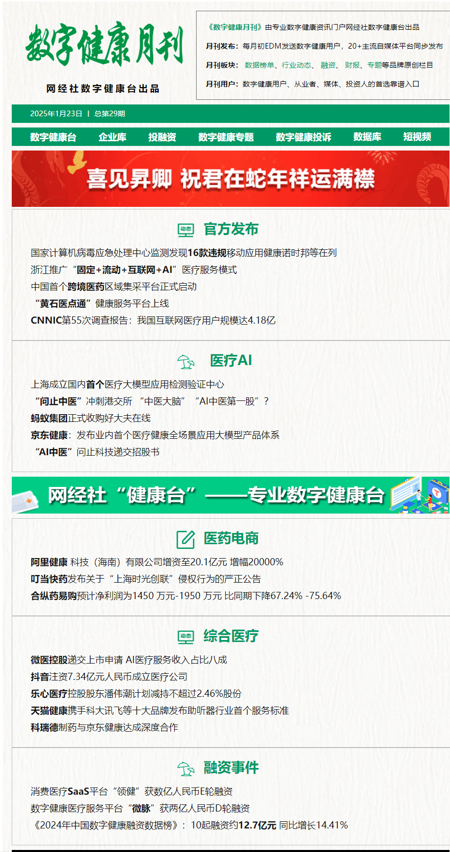 2025年1月,數字健康領域又有哪些事?以下為網經社數字健康台為您帶來本月數字健康領域各平台最新動態回顧。