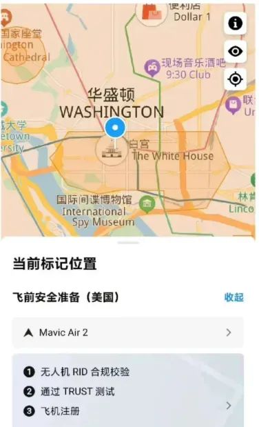 為了避免無人機飛越白宮、五角大樓、機場、軍事基地等敏感區域,大疆曾設置一個“地理圍欄系統”(GEO),讓旗下無人機無法在限制區域起飛。