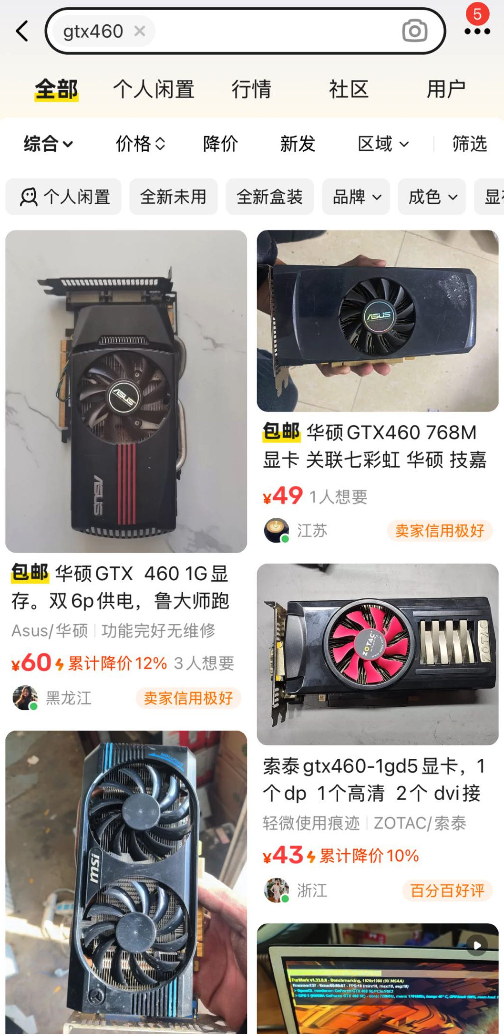 我去某黃魚看了下,現在支持 DirectX 11 特性等級 11_0 的 GTX 460 顯卡,居然要賣 60 塊 “ 鉅款 ” !