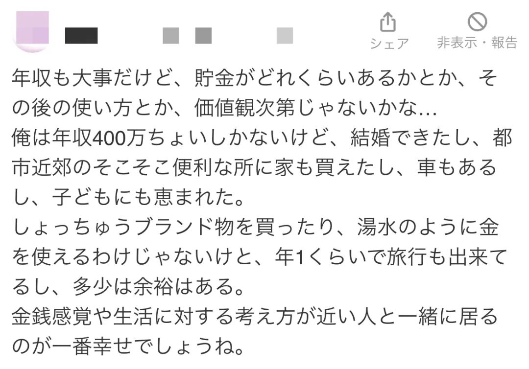 我的年收入只有大約400萬日元,但我還是順利結婚,並且在城市郊區一個相對便利的地方買了房子,擁有自己的車,養育着孩子。