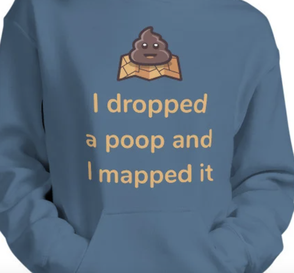 這些周邊大多印着一句便便宣言:“I dropped a poop and I mapped it.”(我拉了一次便便並標記了位置)。