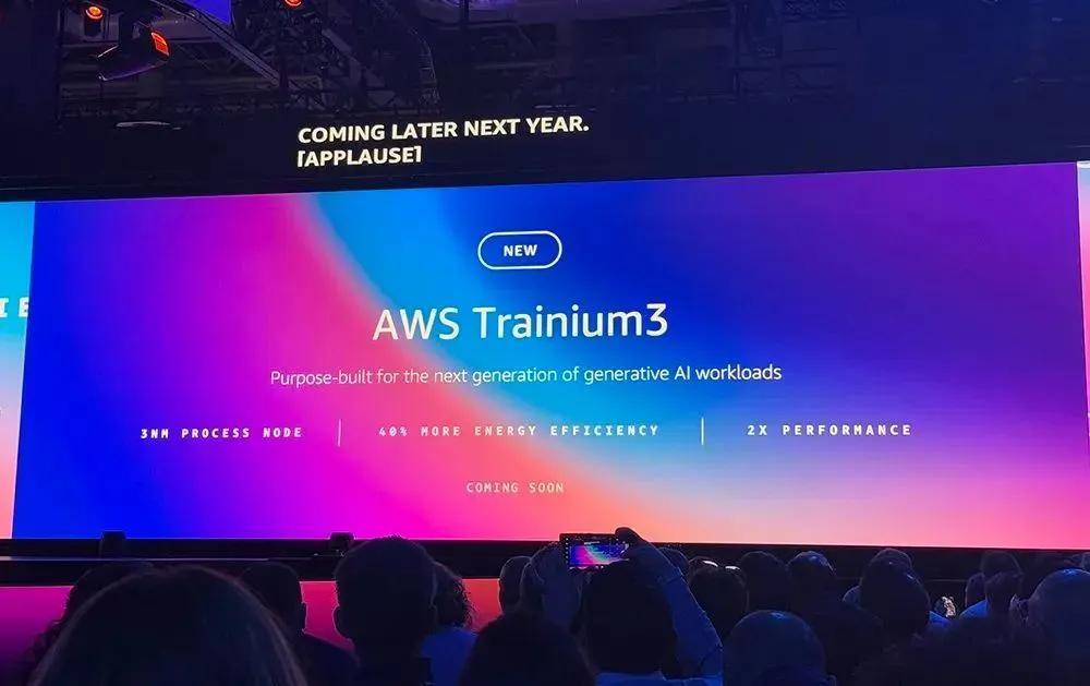 英偉達的另一個大客户亞馬遜在12月3日的AWS年度大會上也宣佈了一款3納米制程的AI訓練芯片,名字叫作Tranium3。顧名思義,Tranium3瞄準的是英偉達最無可替代的“Train”環節。
