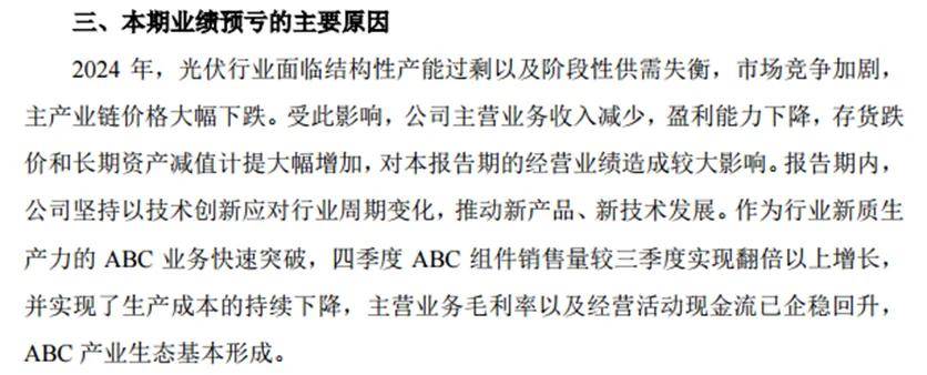 至於大幅虧損的原因,愛旭在公告中提到,由於光伏行業結構性產能過剩以及階段性供需失衡,使得營業收入減少、盈利能力下滑,同時存貨跌價和長期資產減值計提大幅增加。