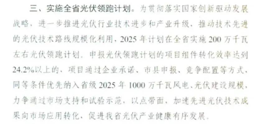 近日,陝西省計劃在2025年實行2GW的光伏領跑計劃,提出申報的組件轉換效率要求為24.2%以上的項目,優先納入10GW年度指標。