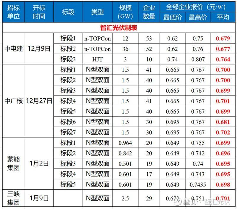 1月9日,三峽集團2024年光伏組件框架集中採購開標,29家企業參與投標,整體均價為 0.7012元/W,高於自律現價。