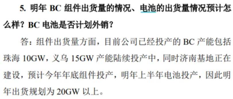 此外,光伏行業多家頭部大廠也宣佈了對BC技術的佈局和規劃。