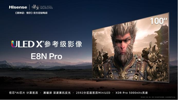 在《黑神話:悟空》與海信電視的官方合作中,《黑神話:悟空》憑藉着精湛的製作,讓世界重新認識了不一樣的中國文化,締造了一段屬於“悟空”的神話。而海信電視憑藉着E8N系列為代表的超強百吋矩陣,成為中國電視走向全球的助推器,同樣也在締造着屬於中國電視的“神話”。