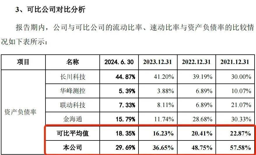除此之外,矽電股份的資產負債率也遠高於同行公司。報告期內,矽電股份的資產負債率分別為57.58%、48.75%、36.65%和29.69%,遠高於同行公司平均值22.87%、20.41%、16.23%和18.35%。