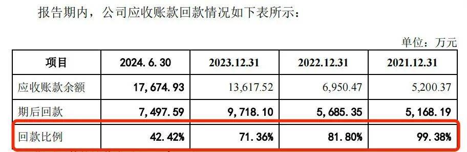 近年來,矽電股份的回款狀況也並不樂觀。報告期內,公司應收賬款期後回款比例分別為99.38%、81.80%、71.36%和42.42%。自2023年以來,公司的回款比例明顯下滑,2024年上半年回款比例已不足五成。