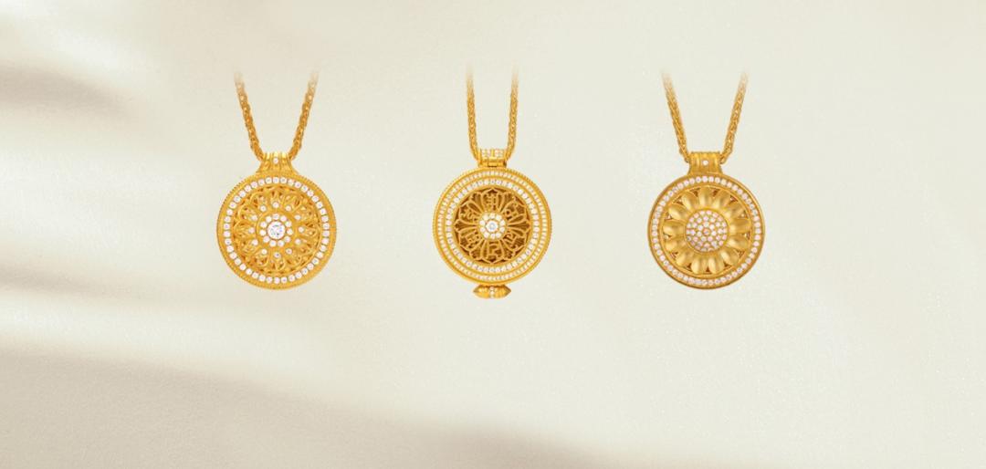 老鋪黃金以古法手工金器作為品牌宣傳點,相比於傳統金飾品牌,它打破了按克價售賣首飾的慣例,而是選用一口價的形式售賣,平均克價更是超過千元,遠高於市場平均金價。另外,老鋪黃金每年幾乎固定漲價兩次,讓產品有了超脱金價的品牌屬性。其次,在選址上,老鋪黃金目前僅有33家直營店,大部分都位於所在城市的核心商圈。產品設計上也加入了花絲、鏨刻、錘揲、鑲嵌等非遺手工技藝,並大量運用傳統紋飾及宗教元素符號,通過金鑲鑽及寶石的組合搭配,為金飾增添了更多的奢侈品珠寶屬性。