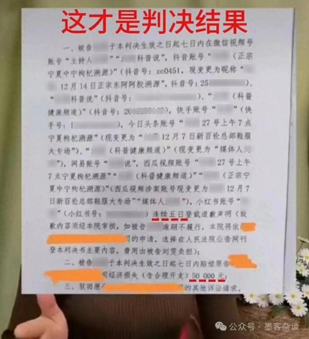 發現真實的判決結果,是道歉5天,賠償5萬。