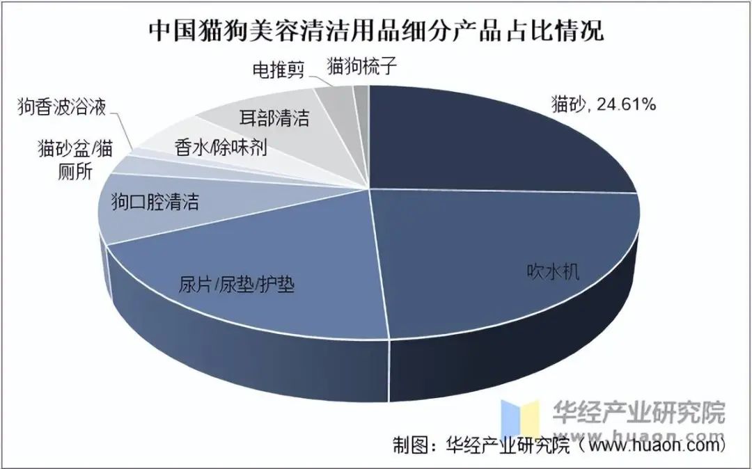 寵物清潔用品中,貓砂佔了最大的比重 圖片來源:華經產業研究院