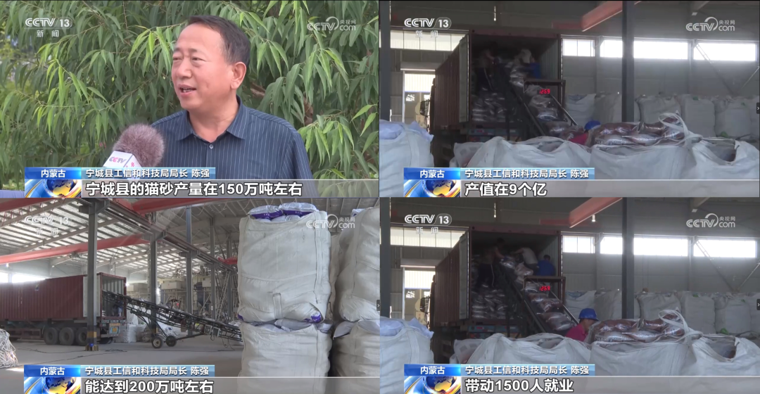 寧城官方的數據顯示,2023年當地貓砂產量在150萬噸左右 圖片來源:央視新聞