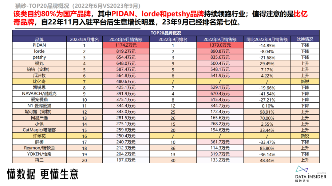 根據國內電商平台數據顯示,貓砂類產品近80%都是國產品牌,但高端產品卻幾乎都是國外品牌