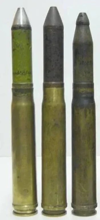 30毫米MK.103炮彈,從左到右:高爆彈、高爆追蹤彈、帶自毀功能的高爆彈