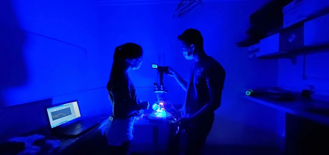 研究人員在收集呼吸數據,同時將皮膚樣本暴露在藍光下。|Kirt L. Onthank
