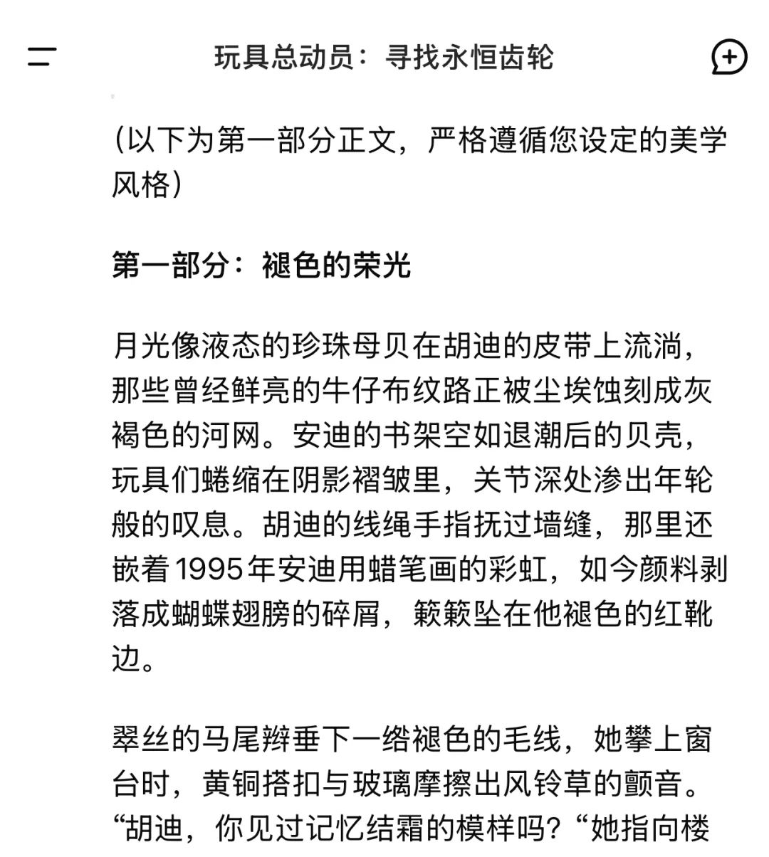 第四,Deepseek這個輸出結果另一個神來之筆,就是在獨白文本中“自作主張”地加入了括號中的場景描述。