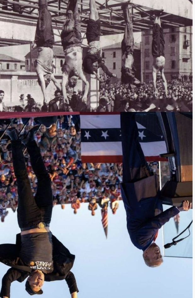馬斯克在普通美國人眼裏,大概等同於要被“吊路燈”的存在。其實整個西方世界的民眾對他都不買賬,所以這次就職儀式上,他搞那一套動作,被全世界網友各種調侃嘲笑,甚至有人把他的照片和倒吊的墨索尼裏放在一起……