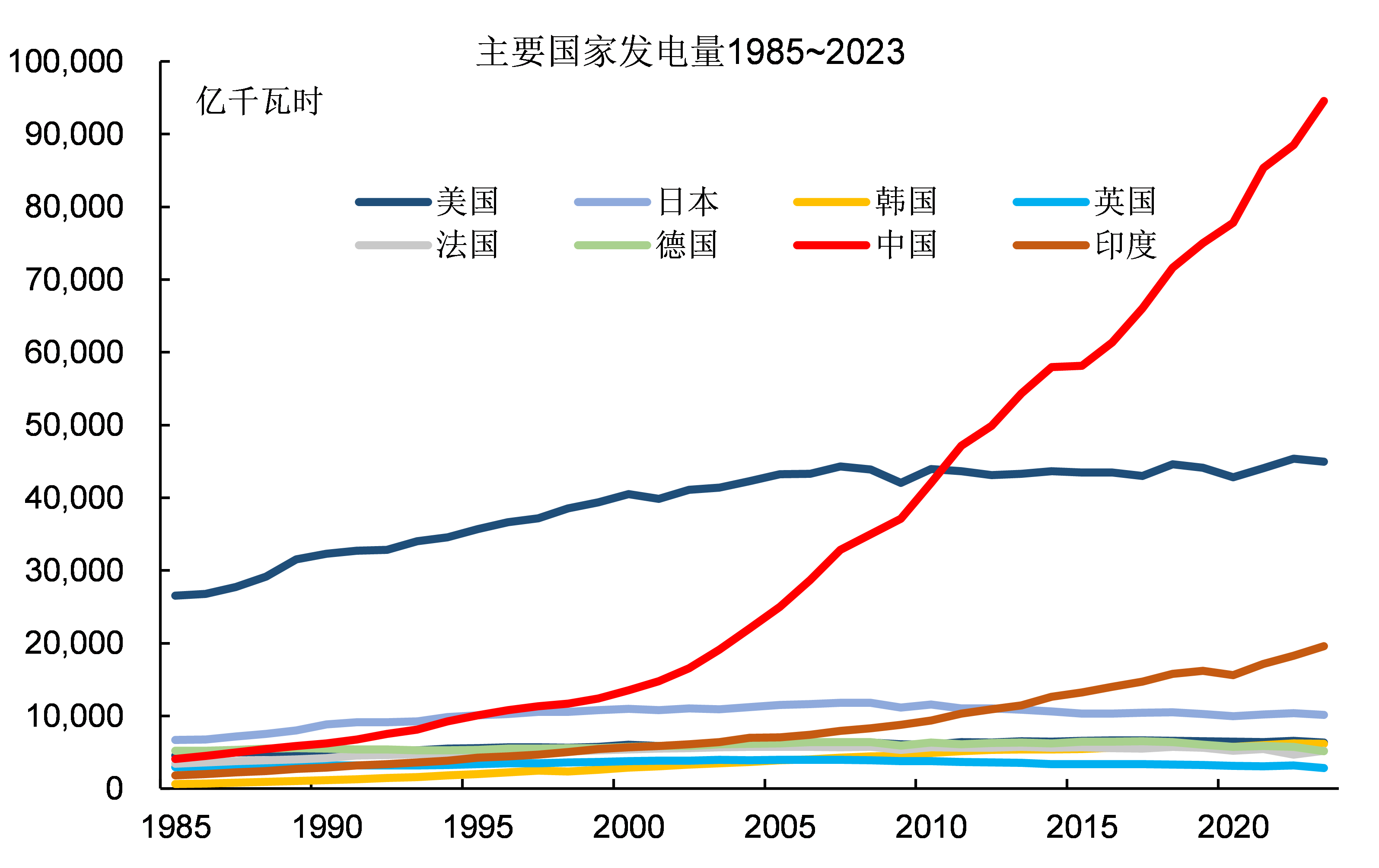 圖16:主要國家發電量(1985-2023)