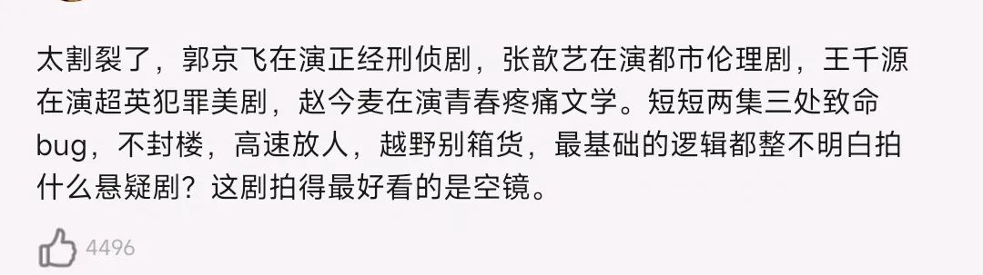 觀眾覺得劇情割裂、沒邏輯,警察角色降智。