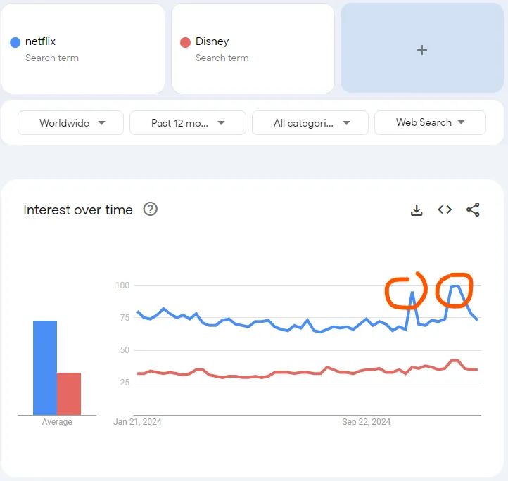 據尼爾森統計,Netflix在每週流媒體前10榜單中排名第一的節目數量比其他所有流媒體的總和還要多,以觀看時長計更相當於最接近的競爭對手的3倍。而在全球、美國和英國Google上搜索次數最多的10部電視節目中,Netflix便獨佔六部,其中《怪物:梅內德斯兄弟的故事》更幫助萊爾和埃裏克·梅內德斯成為2024年閲讀量最高的維基百科頁面之一。
