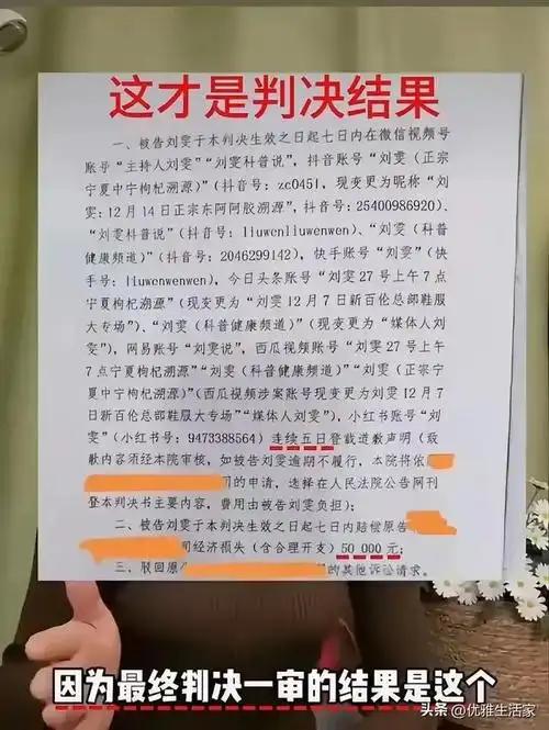 但根據法院的判決結果來看,判決賠償經濟損失是5萬,並非劉雯説的50萬。這50萬是原告的訴求。熟知法律常識的人都知道,賠償多少這是原告主張的權利。