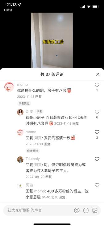 前幾天還有人扒出來,她在2023年發小紅書説,自己已經裝修到第八套房。