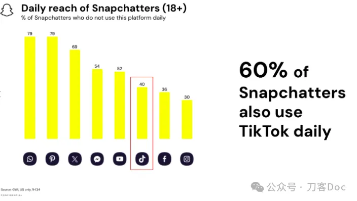 Snapchat比較積極,在向廣告主推介自己時,Snapchat的廣告銷售團隊強調了自己的日活用户和月活用户和TikTok在美國的受眾羣體存在顯著的重疊: