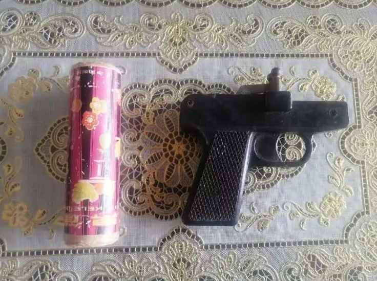 一是在運動場上,有個叫做“發令槍”的東東就必須使用“火辣子”。下圖是發令槍,旁邊的是裝“火辣子”的筒。