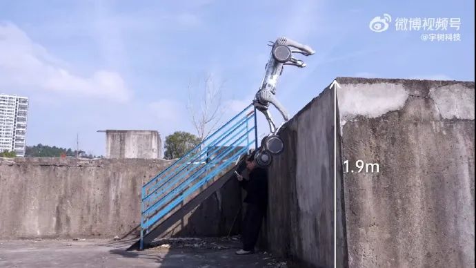 而2024年12月宇樹科技官方發佈的視頻,其機器狗也可以輕易的原地空翻穩穩落地,還可以雙輪直立跳下1.9米的高度。