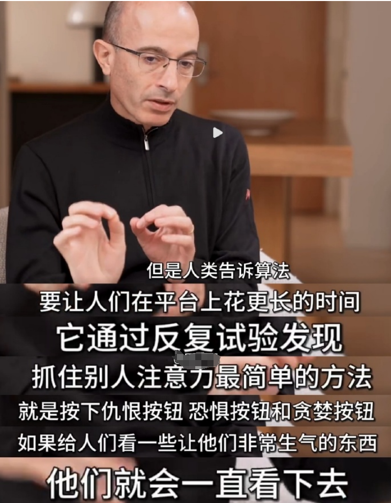 《人類簡史》的作者尤瓦爾·赫拉利的一次採訪,他在談到算法時説——