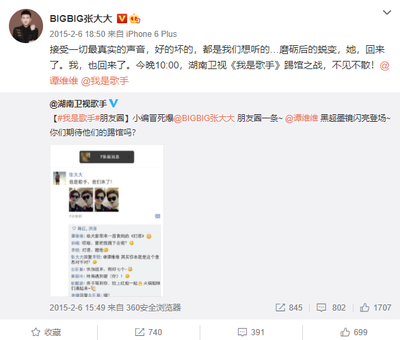 2015年的《我是歌手》中,身為譚維維“經紀人”的他,卻搶戲大哭。
