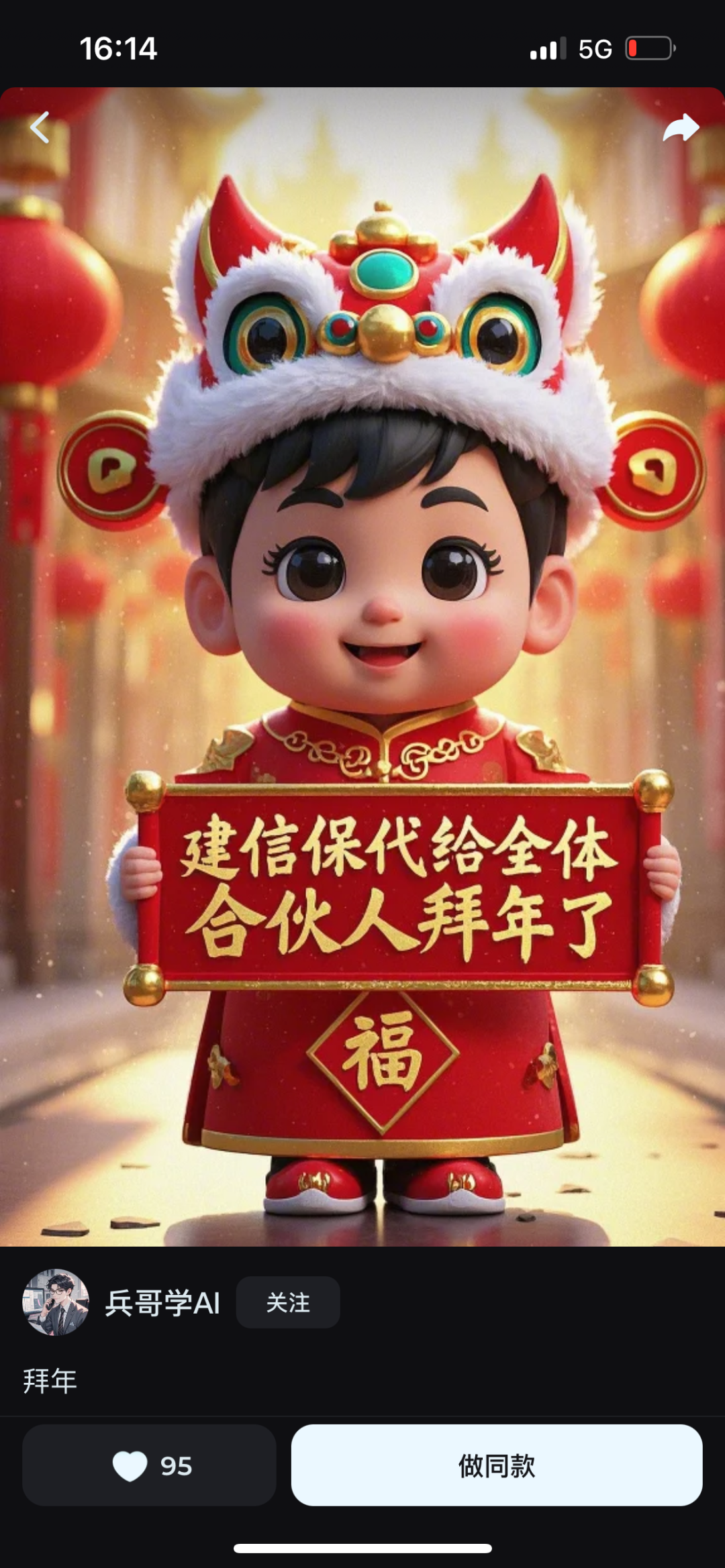 拿ai祝福舉例,在某軟件上,有個合集叫:寵物過大年。裏邊都是用寵物製作的祝福圖片。
