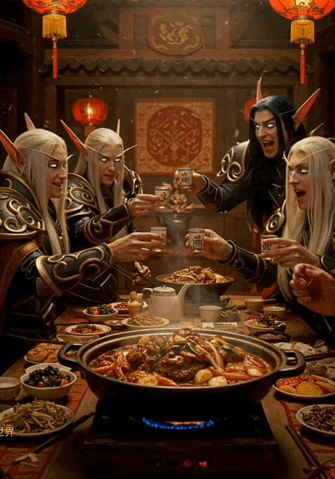 但今年不同,你也許會收到,艾澤拉斯大陸伊利丹和獸人部落送上的年夜飯祝福。
