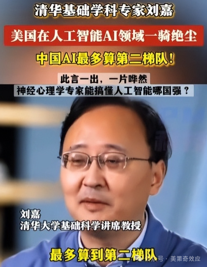 還有這個清華教授,在鳳凰衞視採訪中表示:美國在人工智能領域一騎絕塵,屬於第一梯隊唯一的NO1,而中國勉強屬於第二梯隊靠後部分,不但不如德英等國,而且與美國的差距還在不斷拉大……