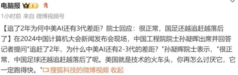 比如這個孫院士,上來就説中美AI差距越來越遠,跟足球差不多。
