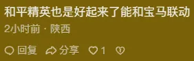 和平精英,贊1518在“萬人迷M4”片段中,每分每秒都在爆梗,什麼“M4兜風,全都是我的迷妹”、“萬人迷M4 吃雞絕配”,讓玩家們直呼“寶馬被和平玩壞了”;