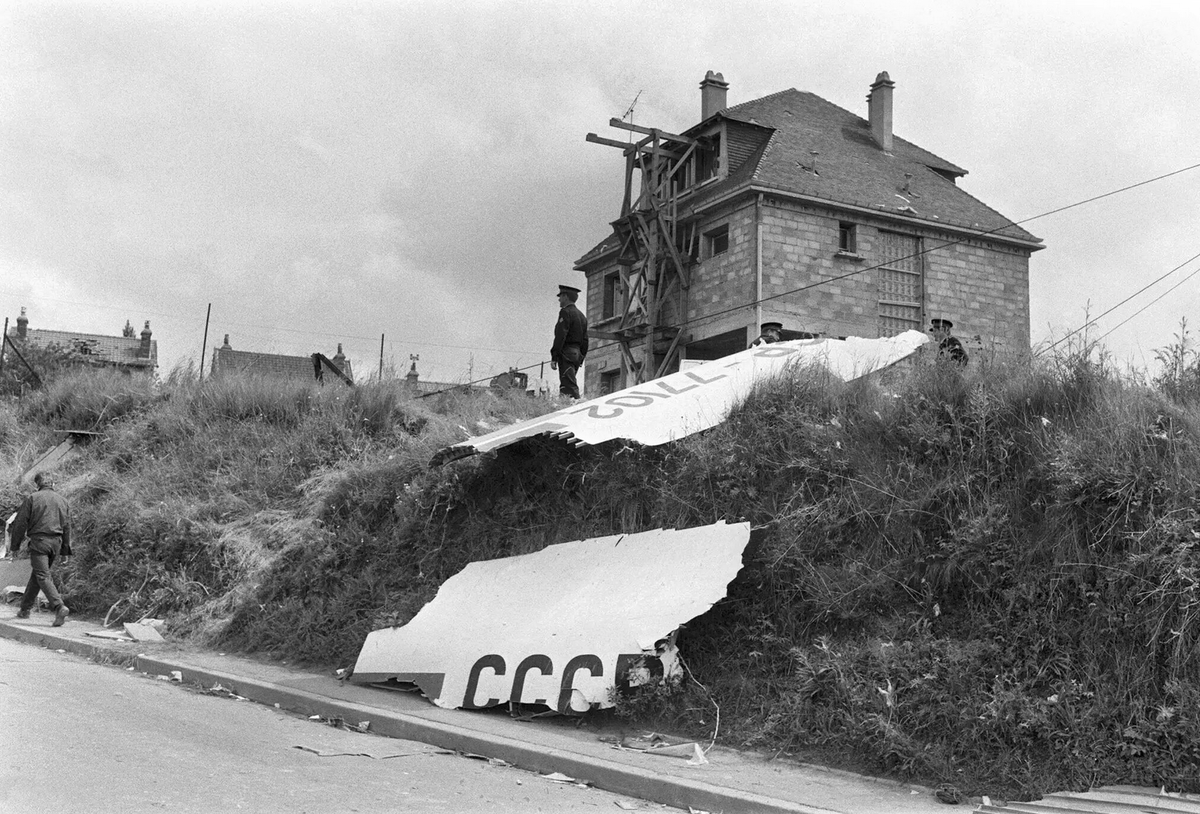 在250,000到350,000名觀眾的注視下,這架飛機突然開始俯衝,然後在空中解體並墜落到巴黎附近的古森維爾小鎮。事故導致8名當地居民和6名機組成員死亡。